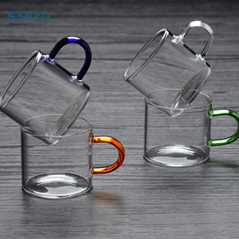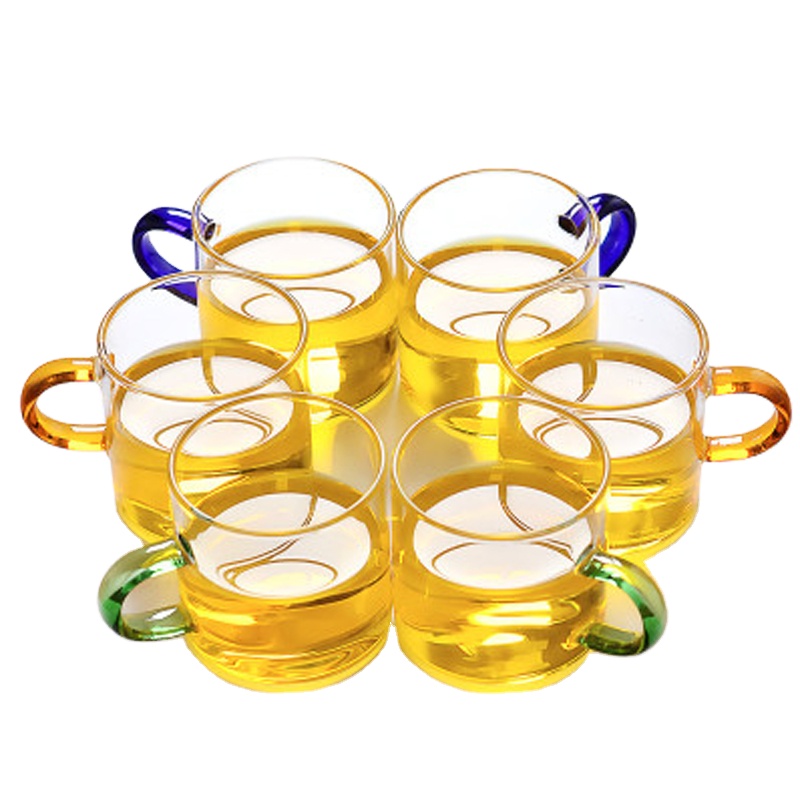 460314High borosilicate Glass teacup Small tea cup with 4 color handles Transparent Kung Fu Tea Cup Manufacturers wholesale cups