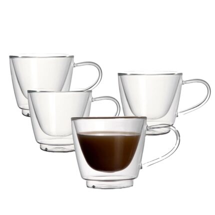 460256 Clear Borosilicate glass Double Wall Coffee Glass with handle 250ml borosilicate coffee mug with handle