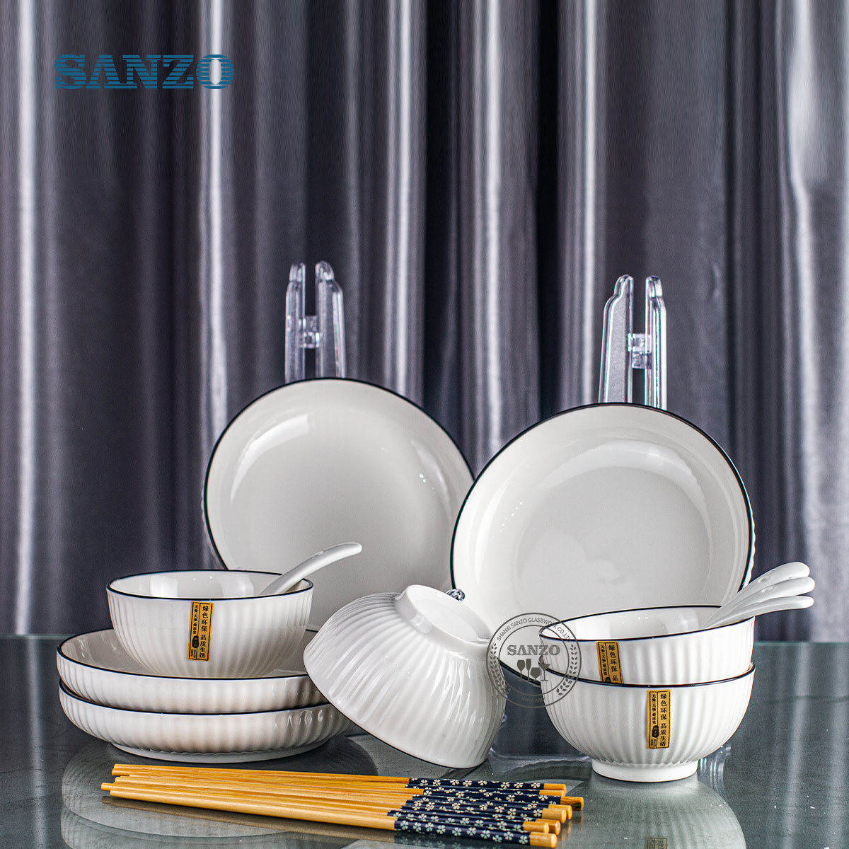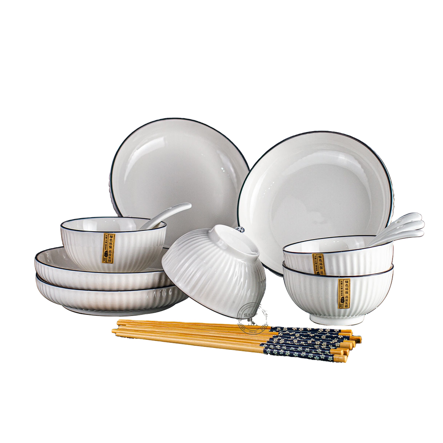 16 pieces of Nordic simple household white porcelain tableware set clear white glaze dinnerware set