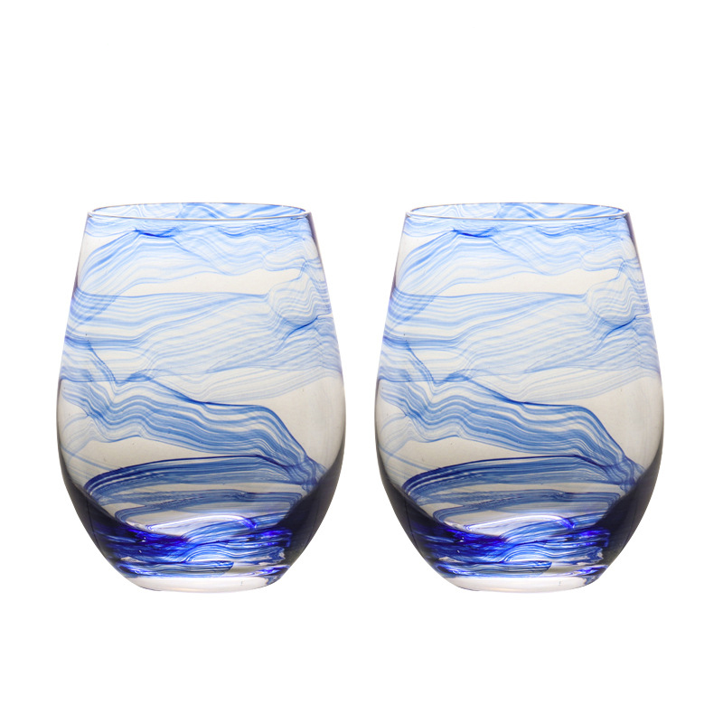 20oz High Grade Lead Free Crystal Blue Color Stemless Wine Glass 600ml