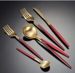 304 Stainless Steel Portuguese Knife Fork Spoon Titanium Plated Gold West Tableware Wedding Gift