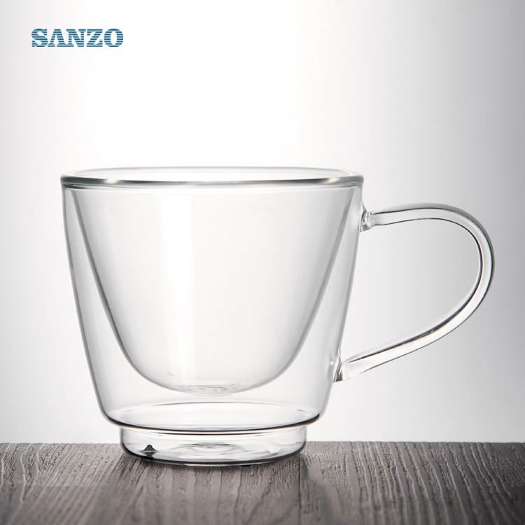 460128 Customizable Double Wall Heat Resistant Borosilicate Coffee Mug with Handle for Espresso Latte Tea 200ml
