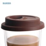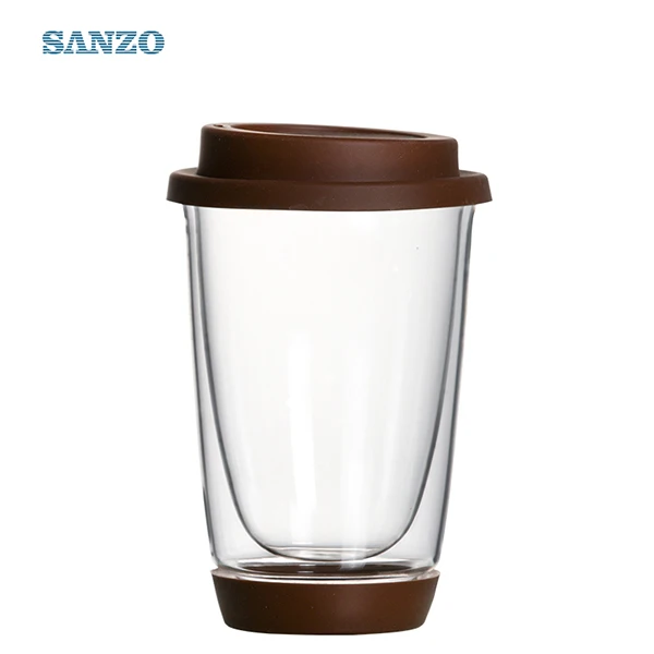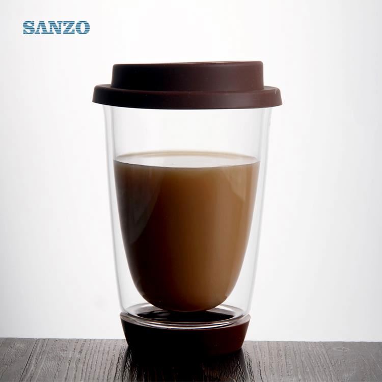 460259 clear Borosilicate glass Silicone cover and bottom double wall coffee cup 400ml - SANZO HOME