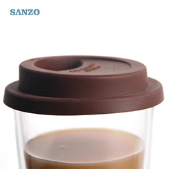 Home Borosilicate Glass Double Wall Coffee/Tea Cup 460259 clear Borosilicate glass Silicone cover and bottom double wall coffee cup 400ml