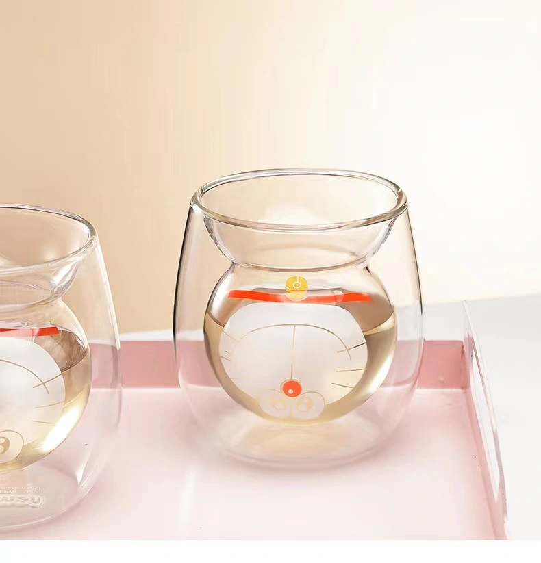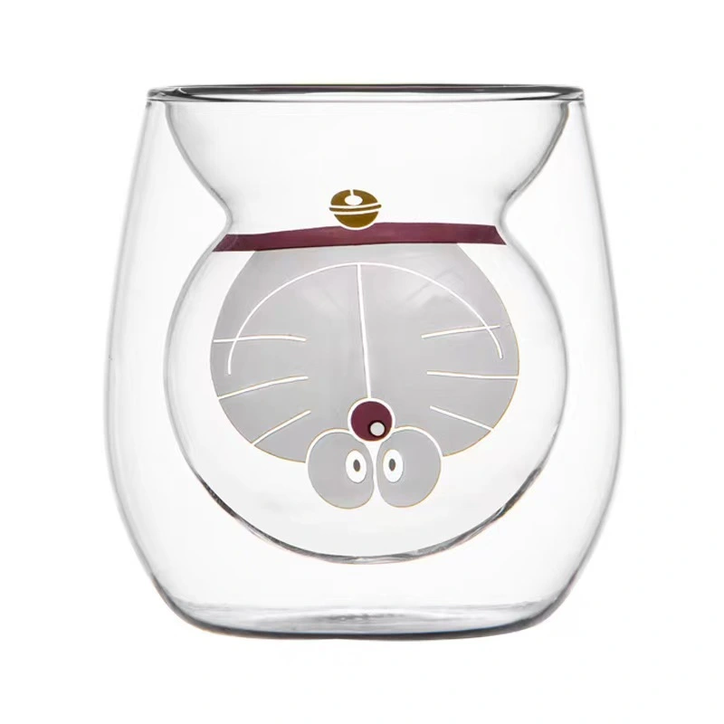 Home Borosilicate Glass Charming Cartoon Themed Double-Walled Glass Cups