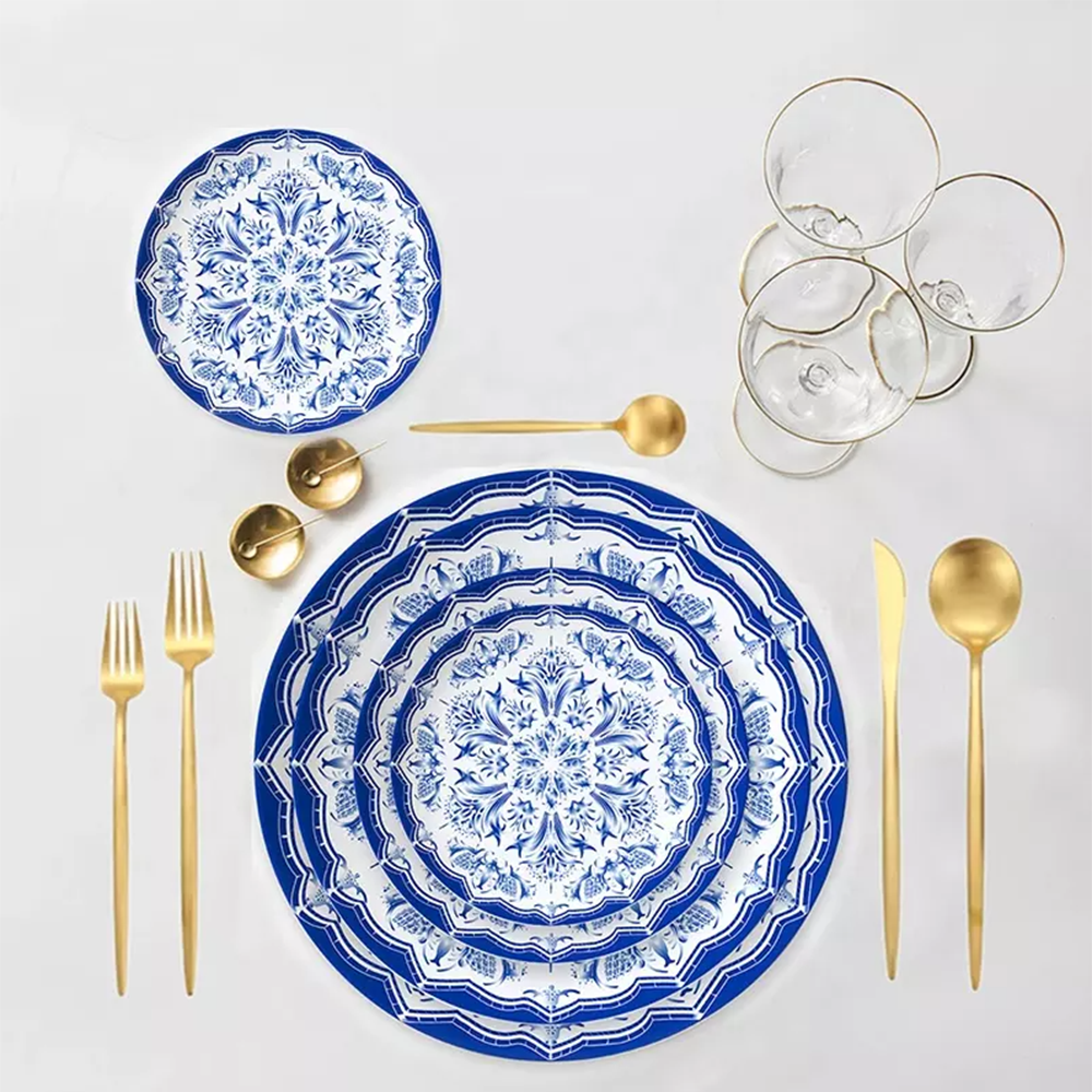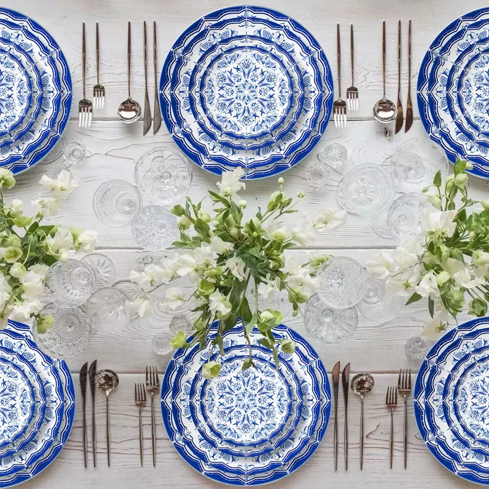 Cheap Price Dishwasher Safe Ceramic Blue and White Ceramic Dinner Dish Plate Set for Home