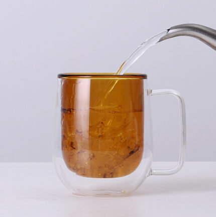 This cup has a practical ear shaped handle and a novel heart shaped design. The double-layer design can effectively isolate heat, allowing people to comfortably hold hot drinks even when pouring them in. Their transparency makes the color of the beverage stand out and enhances its aesthetics. In addition, this type of cup usually has good heat resistance.