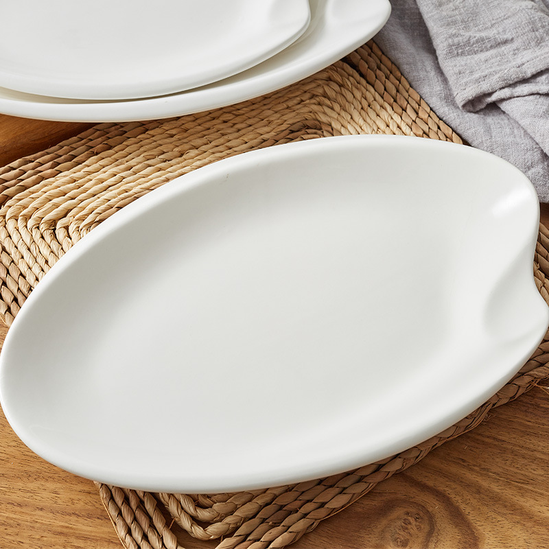 Ceramic Cutlery Set, White Porcelain Vegetable Plate, Creative Ocean Wave Plate