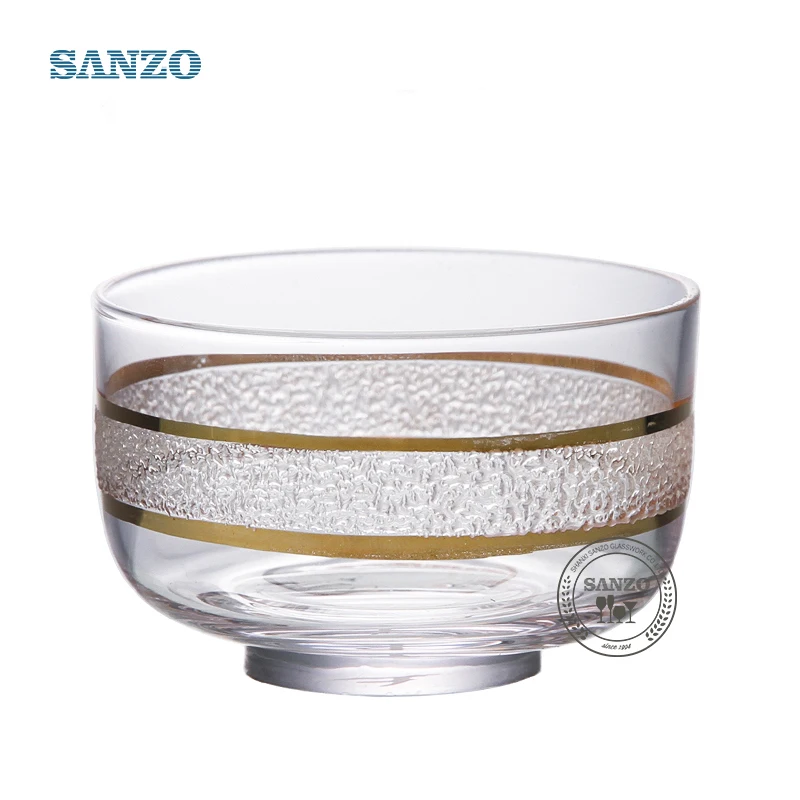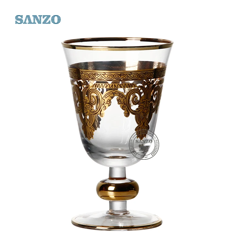 405018 High Grade Machine Made Engraved Crystal Whiskey Glass with Gold Rim