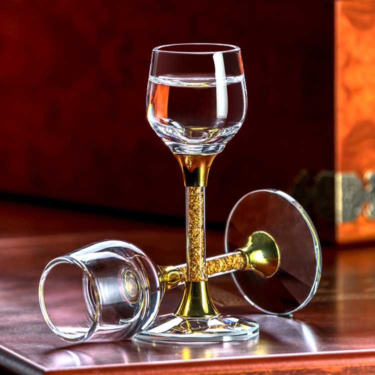 Crystal glass Traditional Chinese Baijiu goblet Bar gold print Shot Glasses Set