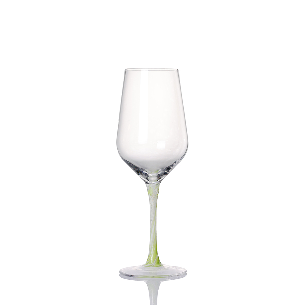Customized Crystal Glass Slanted Red Wine Goblet with Colorful Stem for Home Wedding Hotel