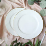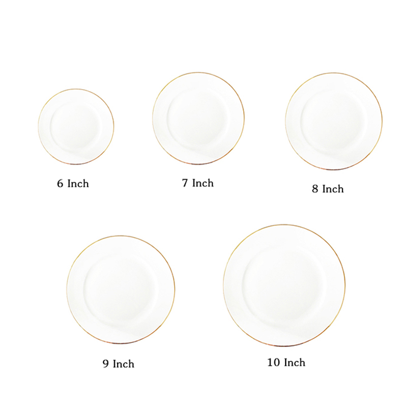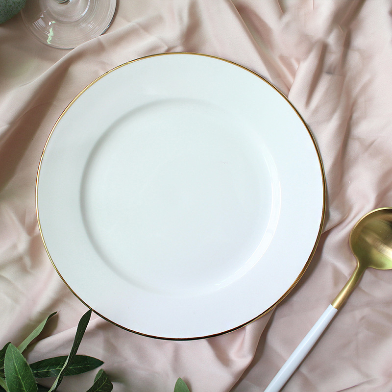 Customize LOGO Household Hotel Gold Rim White Ceramic Dishes Flat Plate
