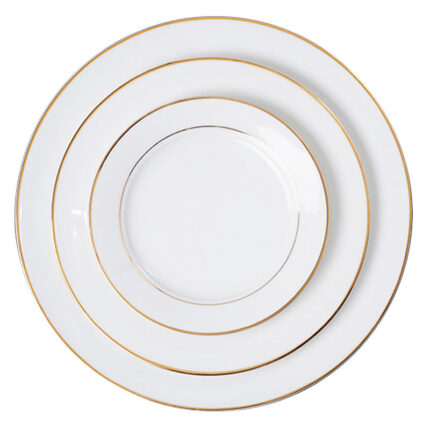 Luxury Gold Rim Ceramic Dinnerware Set White Porcelain Flat Plate Dishes For Restaurant Wedding