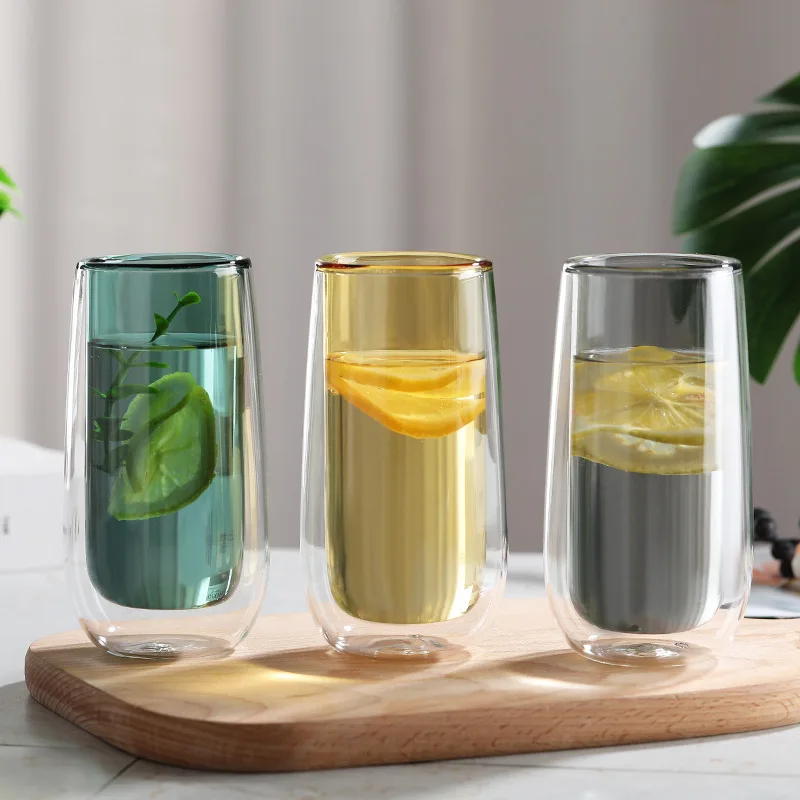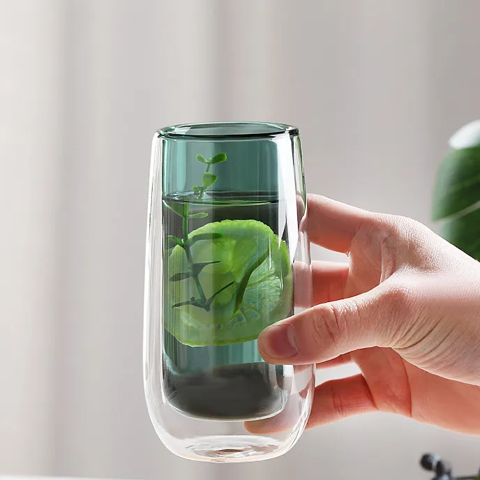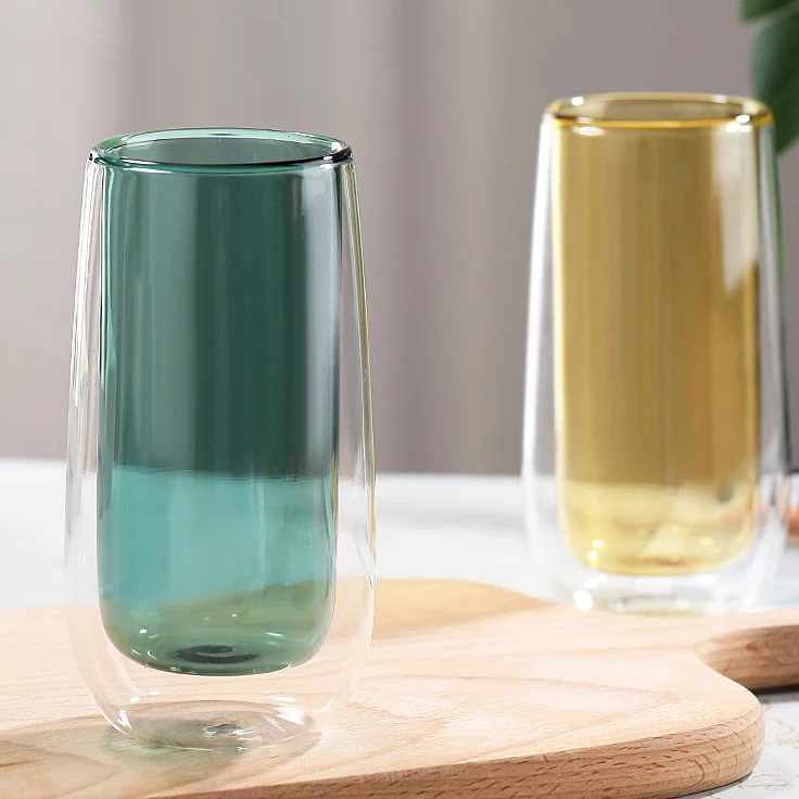Home Borosilicate Glass Double Wall Coffee/Tea Cup Double Glass Cup Thickened Household Heat Insulation Color Bladder Anti-hot Water Cup