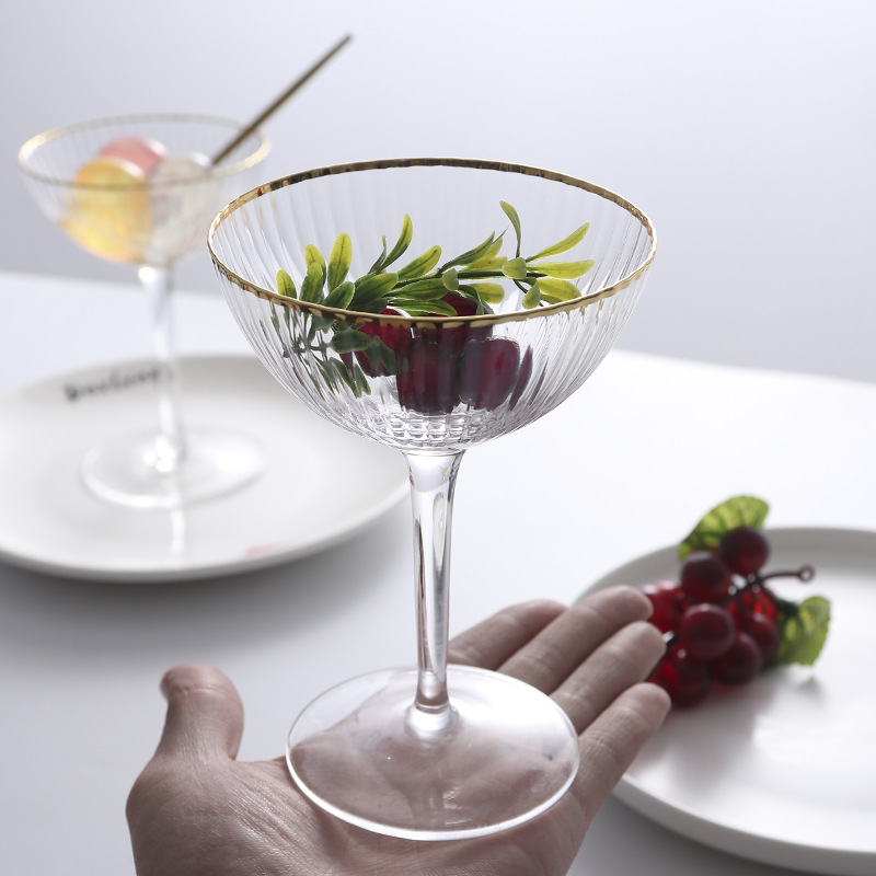 Gold Paint Lead Free Glass Width Mouth Martini Liquor Cocktail Shot Glasses for Bar Party