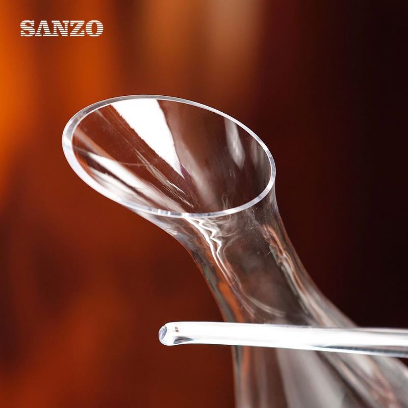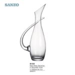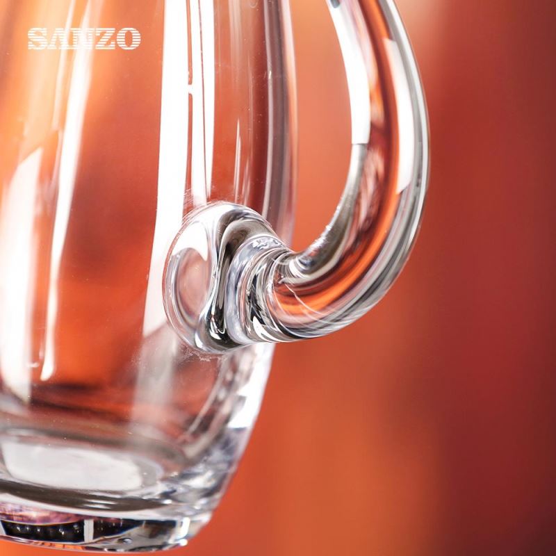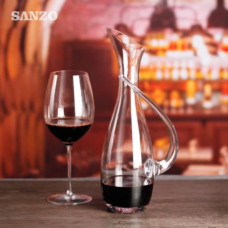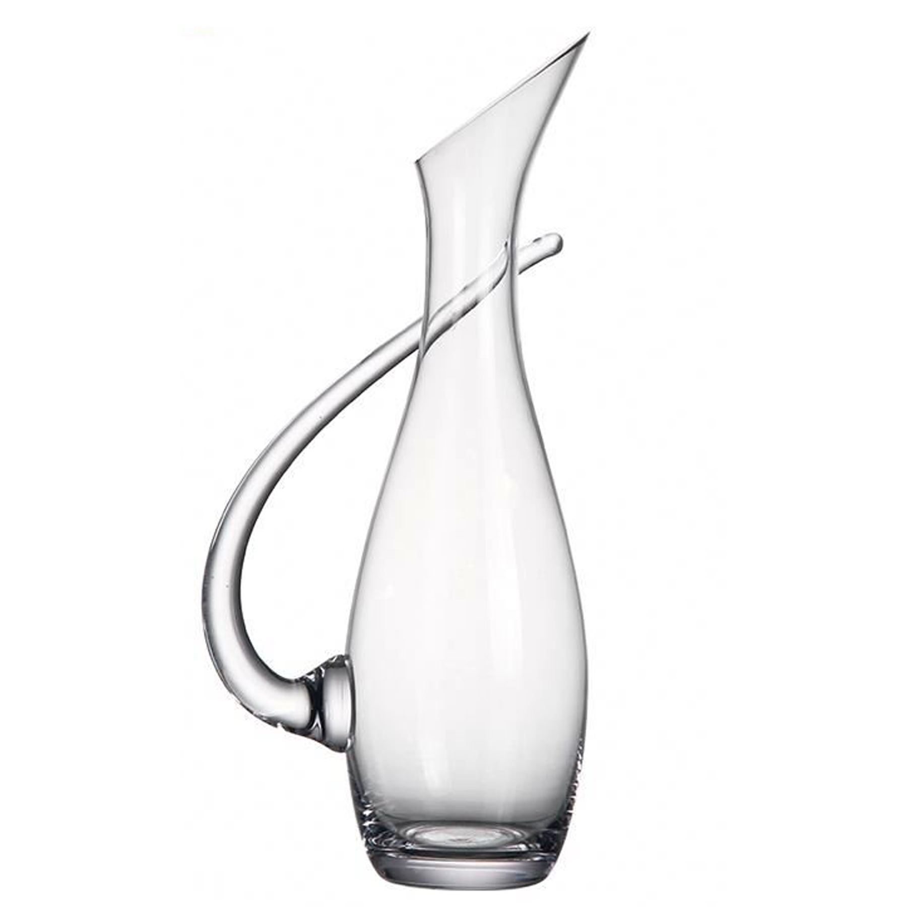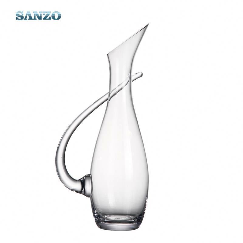 Hand Blown Custom Logo Large Glass Wine Carafe Slanted Decanters with Handle 1000ml