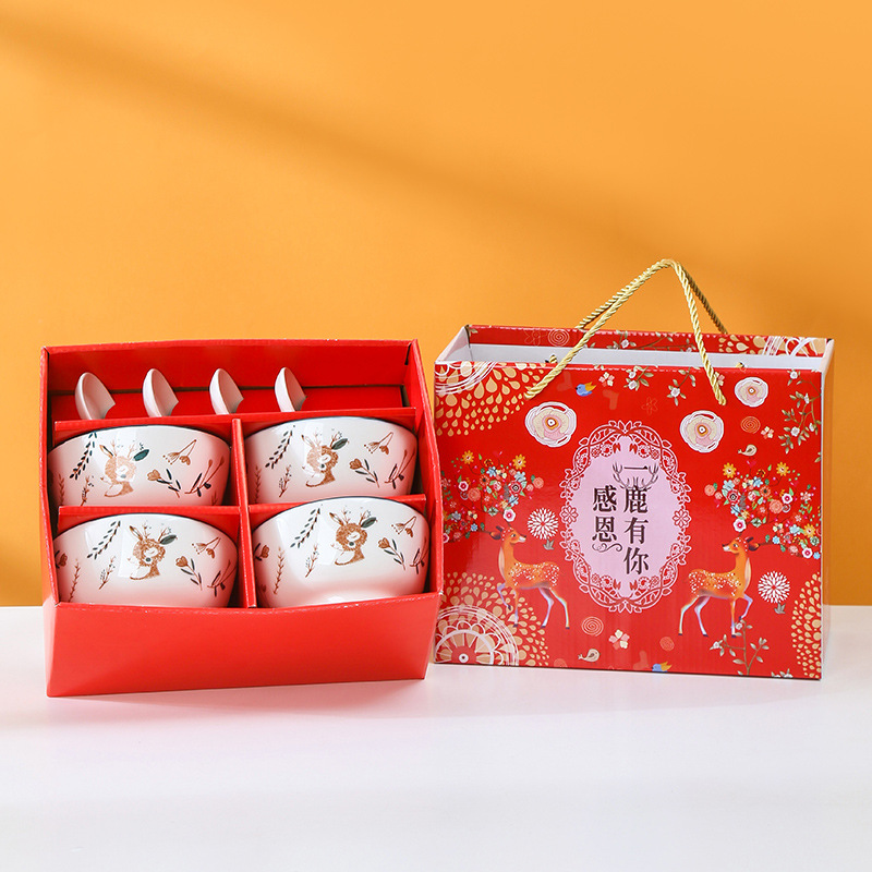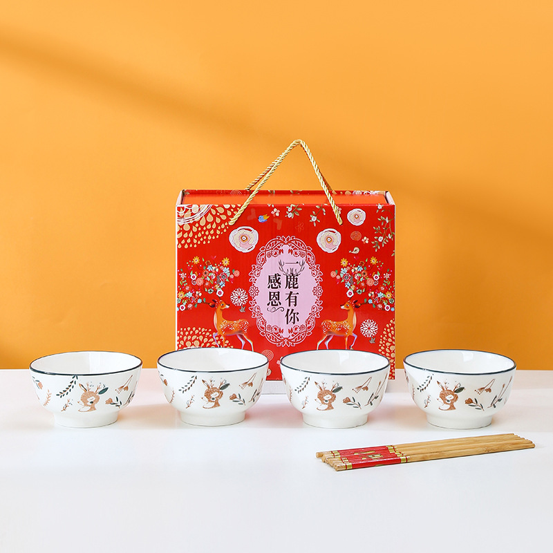 High Quality 4 Ceramic Bowl Set Gift Box Ceramic Tableware Set Opening Activities With Hand Ceremony Ceramic Bowl Custom