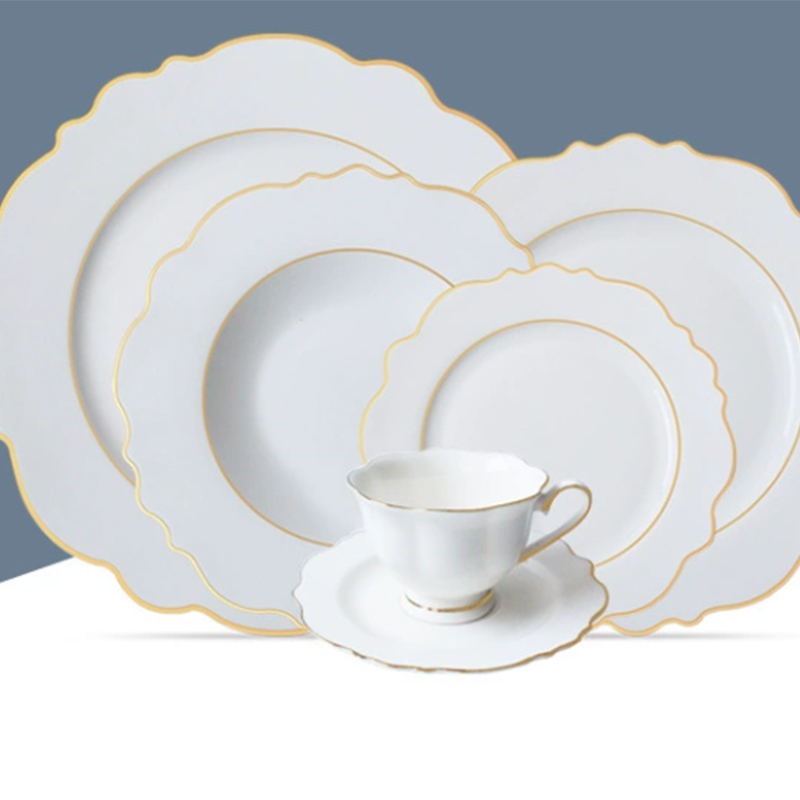 Hot Sale Creative Gold Rim White Porcelain Dinnerware Ceramic Charger Plate