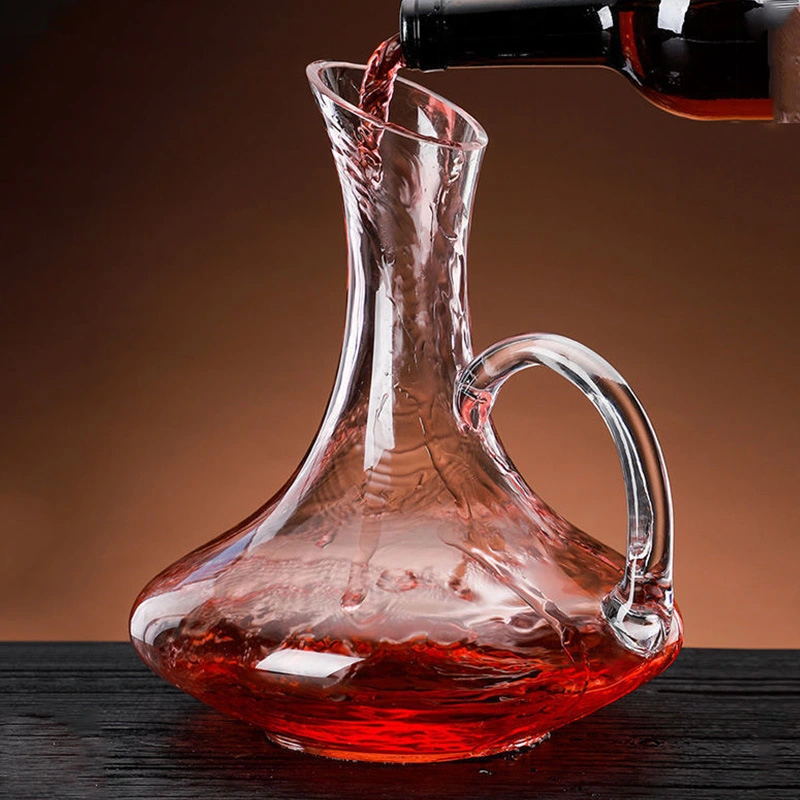 Wholesale Creative Design Lead-free Crystal Carafe Glass Red Wine Decanter with handle