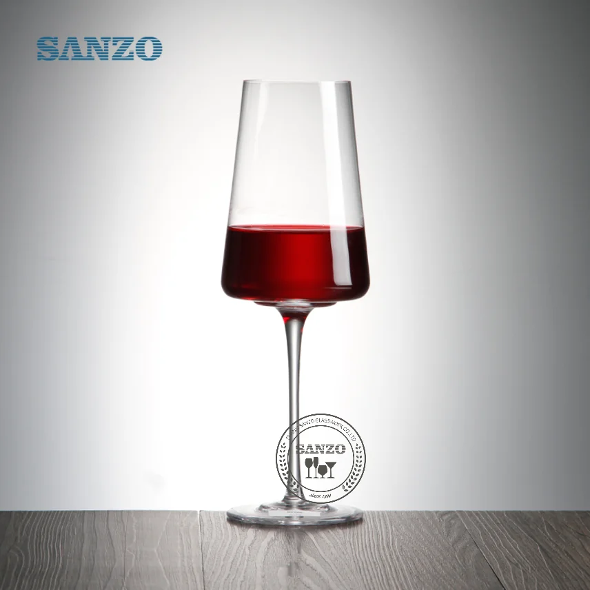 Hot selling transparent eco-friendly long handle hand-blown tall lead-free crystal red wine glass