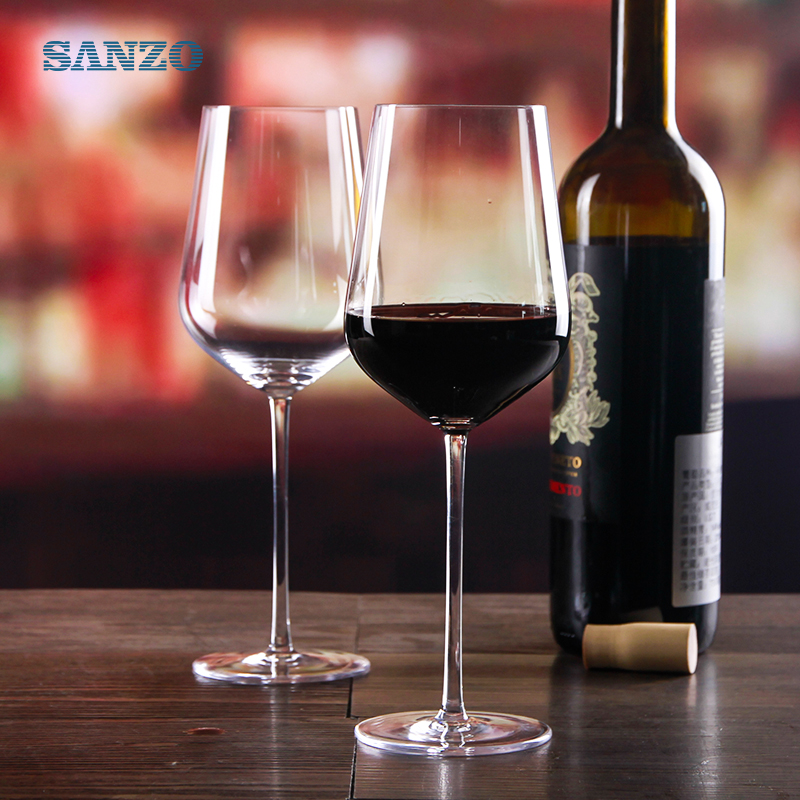 Hot selling transparent eco-friendly long handle hand-blown tall lead-free crystal red wine glass