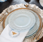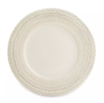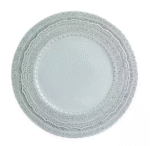 This set of plates features a minimalist style with an irregular geometric shape, edged with wavy serrated decorations that add visual interest. The color of the plates maintains a stark simplicity in white, but they are encircled by a delicate golden border, adding a touch of luxury as well as an air of elegance.