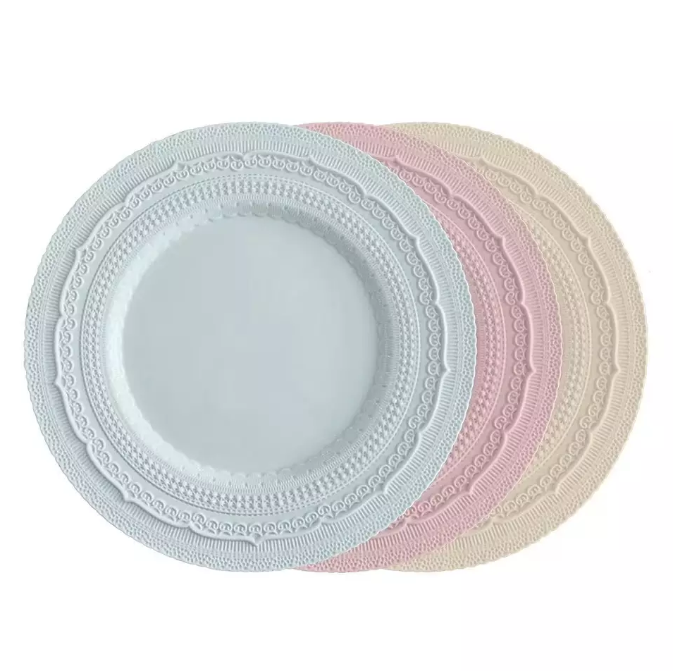Sanzo Ceramic high definition Pink Carving Porcelain Wedding Charger Plate