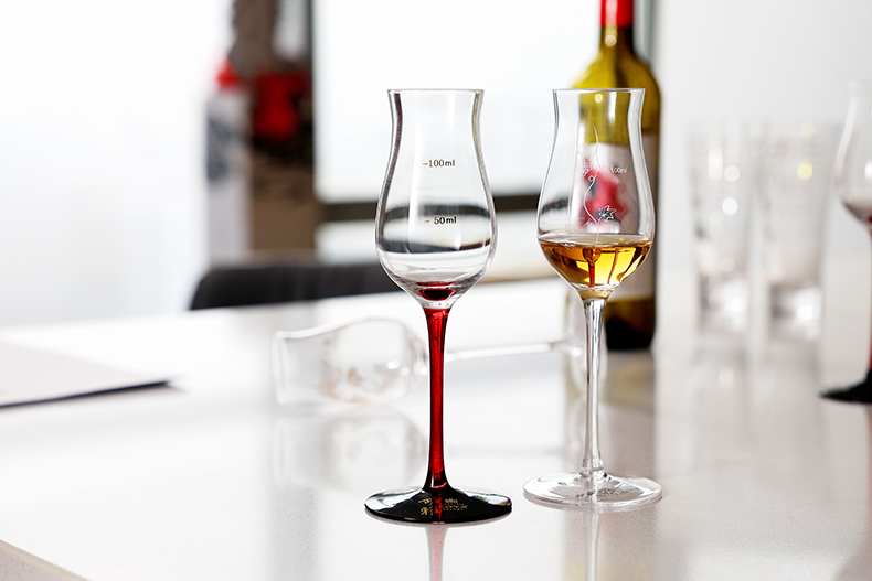 Customized Crystal Glass Slanted Red Wine Goblet with Colorful Stem for Home Wedding Hotel