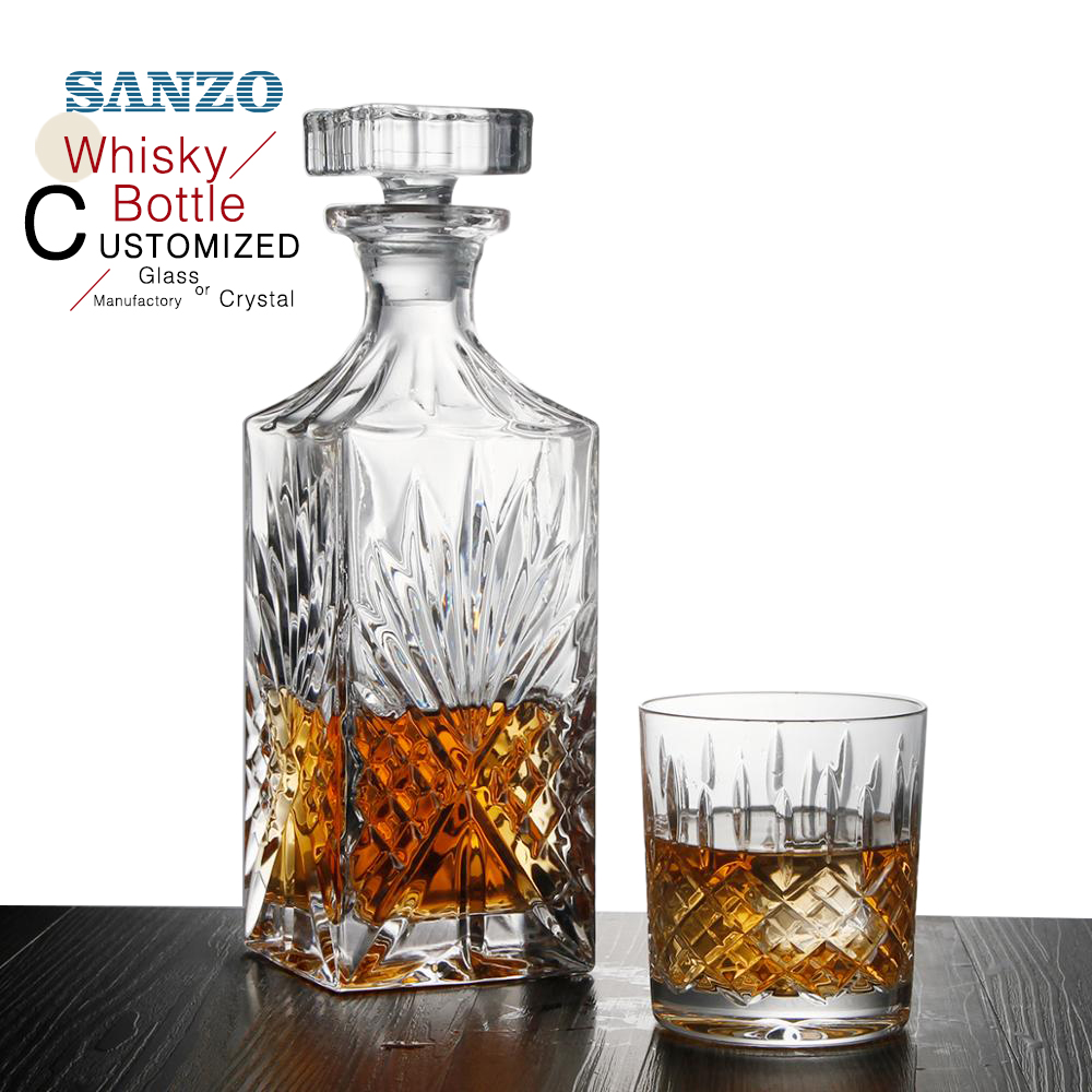Wholesale 750ml Soda-lime Engraved Crystal Glass Wine Whiskey Bottle Decanter Set