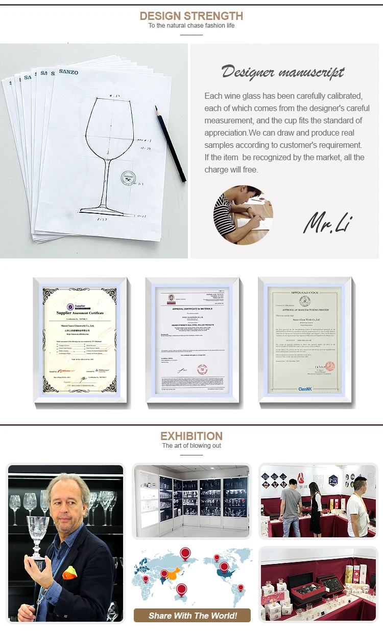 A: After 20 years development , Sanzo grow into mature glassware manufacturer, service more than100 countries’ customers. We are always going ahead in Glassware industry, pursuing perfection is our whole life task