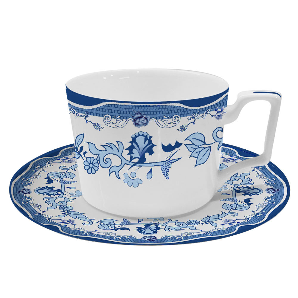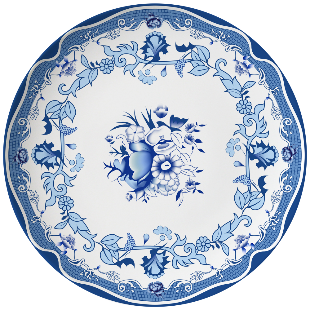 Wholesale Classic Fine Bone china Blue Flower Plate Dish dinnerware set For Wedding