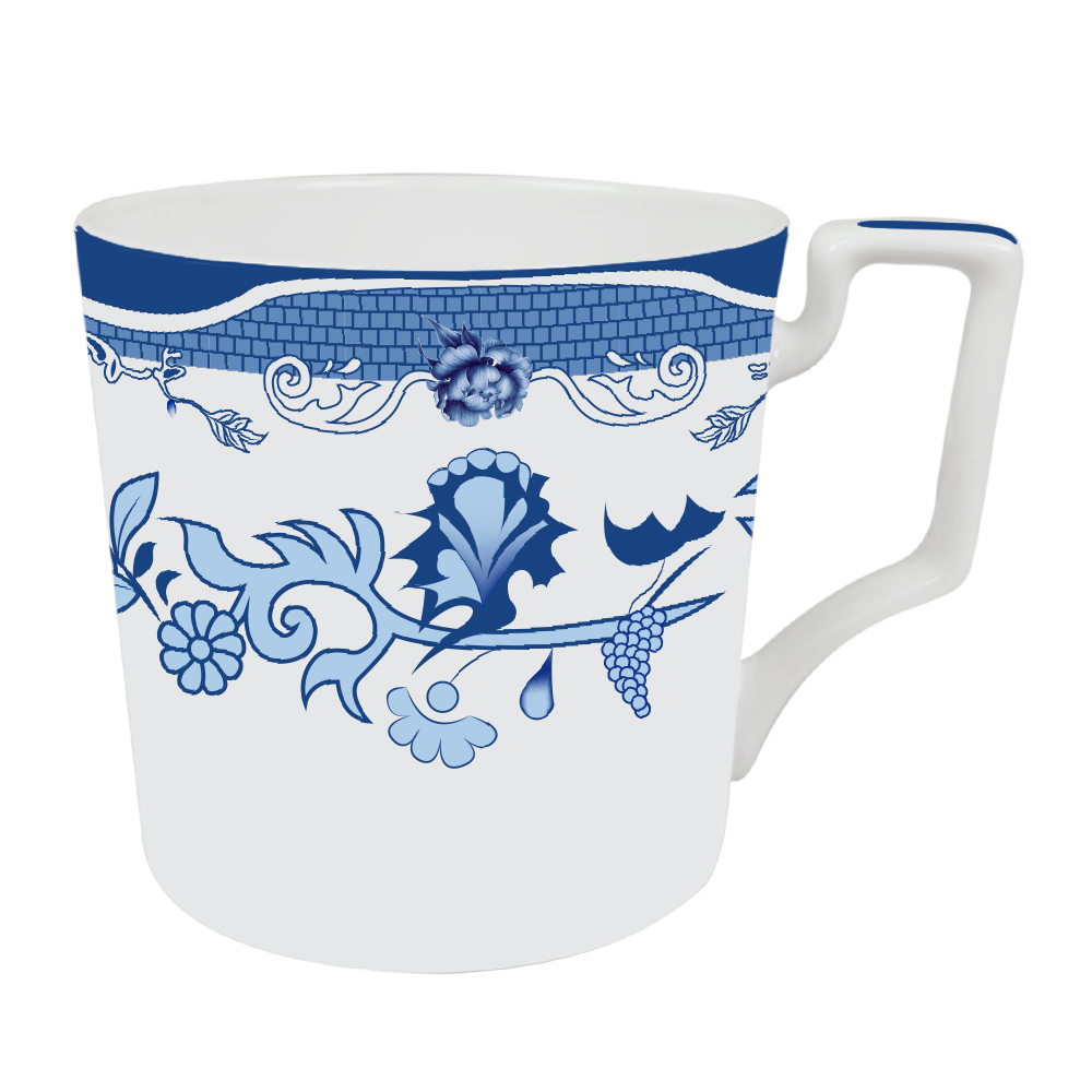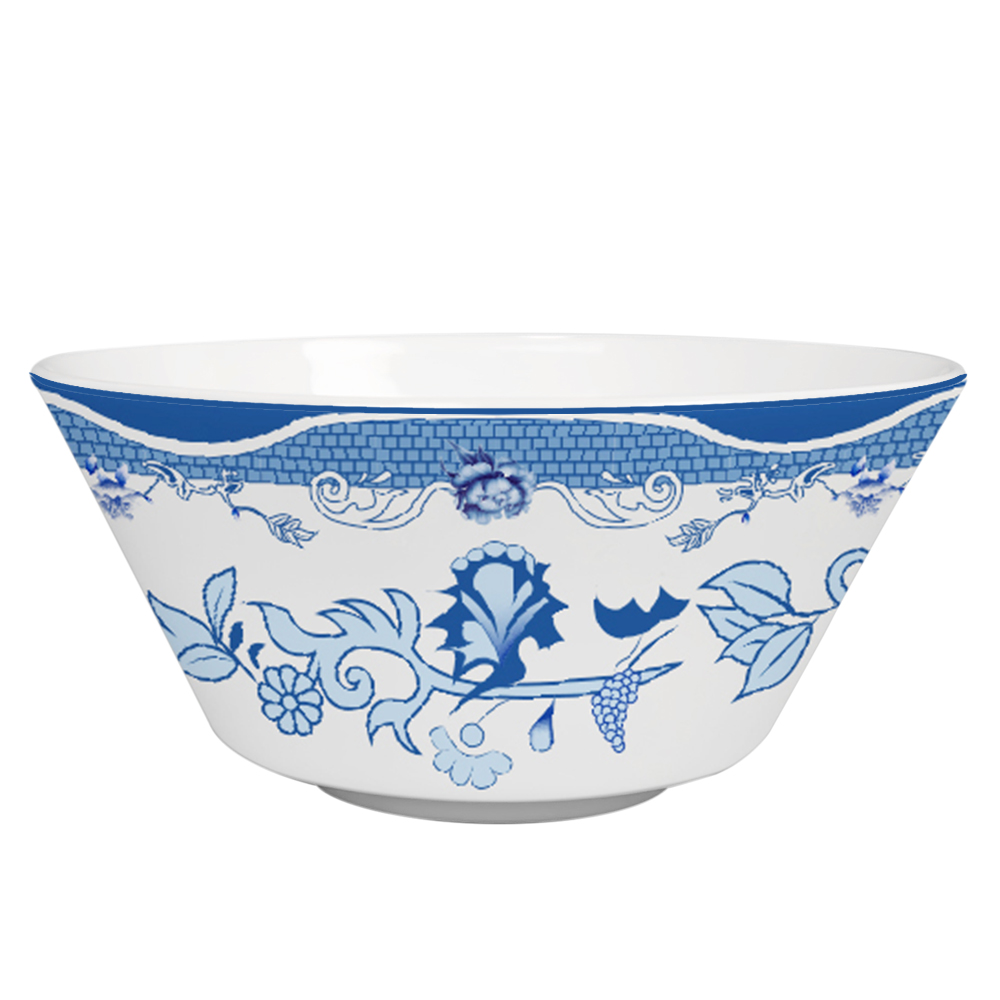 The design on the dinnerware showcases a traditional blue and white porcelain style, with classic blue used to depict floral patterns against a white background, creating a classical and elegant feel. Meanwhile, the edges of some plates feature geometric shapes and linear designs, adding a touch of modernity and a sense of understated luxury.