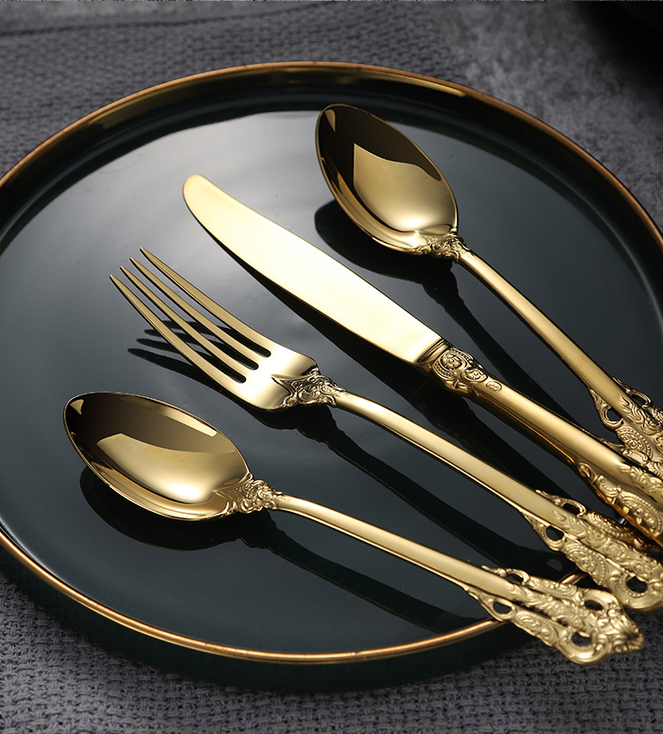 Wholesale Cutlery 4 Piece Set Gift Box Gold Cutlery Set 1810 Stainless Steel Cutlery Luxury With Case