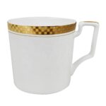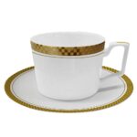 This set of plates features a minimalist style with an irregular geometric shape, edged with wavy serrated decorations that add visual interest. The color of the plates maintains a stark simplicity in white, but they are encircled by a delicate golden border, adding a touch of luxury as well as an air of elegance.