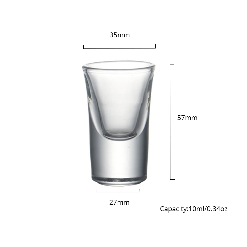 The heavy base of the shot glass not only adds stability but also gives it a quality feel and aesthetic appeal. It is often used for special occasions or in upscale establishments where presentation and durability are valued.