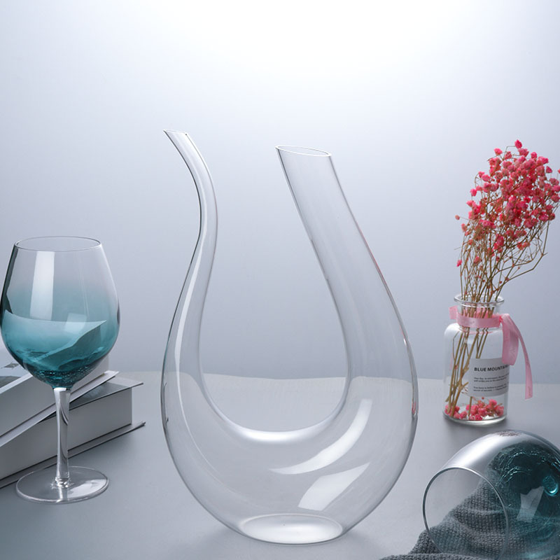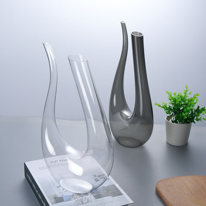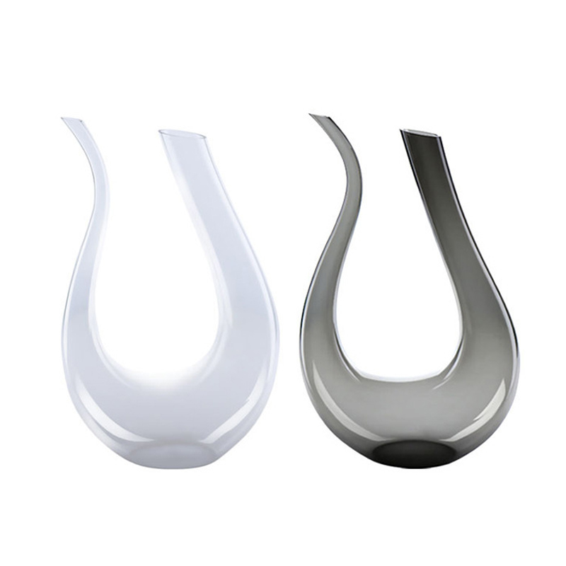 Wholesale Small Batch Simple Smoke Gray U-Shaped Wine Decanter Quick Pourer
